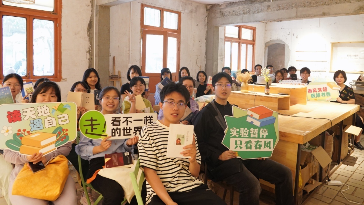 在书籍分享中,大家轮流介绍自己推荐的书籍,分享最打动自己的一段文字,有人声情并茂地朗读书中段落,有人结合自己的临床或科研经历畅谈感悟,也有同学因一段文字引发共鸣而现场展开讨论,思想的火花在春风中自由碰撞。