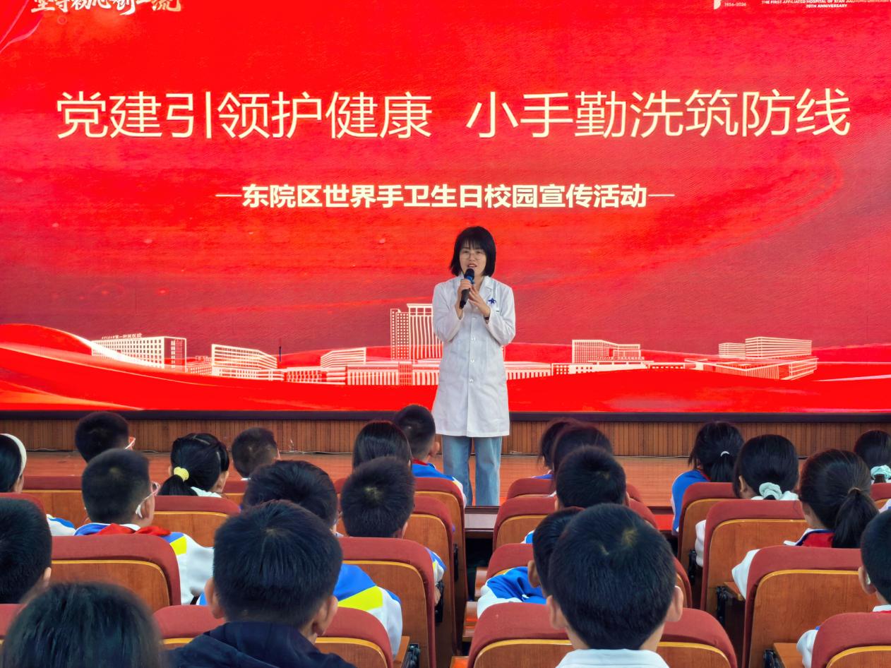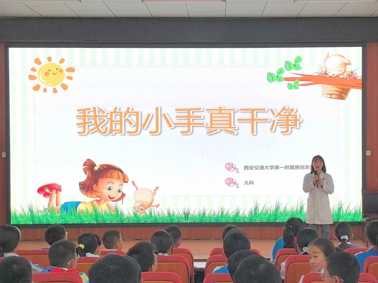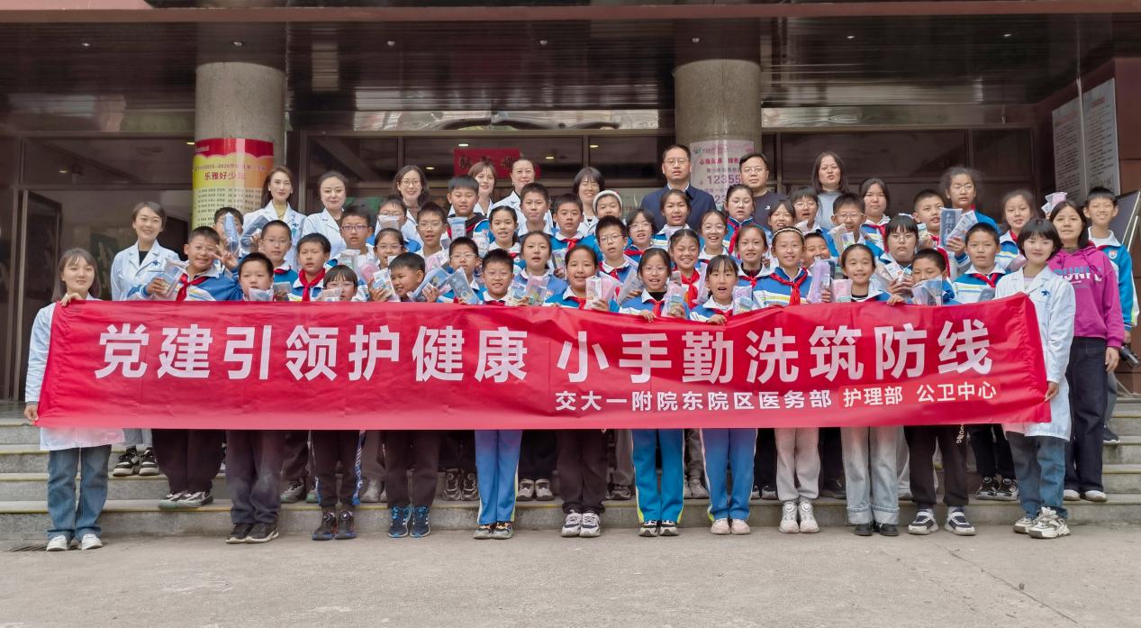 为迎接世界手卫生日,献礼建院70周年,充分发挥党员先锋模范作用,切实筑牢校园健康防线,2026年4月20日下午,西安交大一附院东院区医务部控感办、护理部、公共卫生中心联合走进西飞一小,开展“党建引领护健康 小手勤洗筑防线”主题手卫生宣传活动,将科学的健康知识送到师生身边。