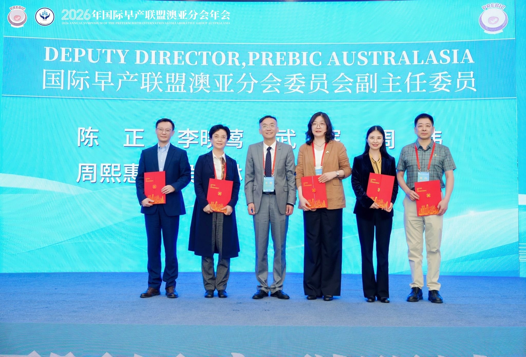 国际早产联盟(Preterm Birth International Collaborative, 简称PREBIC)是由儿科医生和研究人员组成的国际权威学术组织,同时也是世界卫生组织(WHO)在妇幼健康领域的核心顾问机构之一。其组织机构成员涵盖欧洲、亚洲、北美、南美和澳大利亚,使命是优化新生儿健康、通过跨学科协作引领全球早产防治研究方向。国际早产联盟澳亚分会聚焦澳亚地区早产防治工作,推动澳亚地区早产临床管理与转化研究进展,促进中国、澳大利亚、日本、韩国、印度等国家的专家交流,共享早产防治前沿经验。近期2026年PREBIC澳亚分会学术年会在重庆举办,来自中国、泰国、新加坡、蒙古等10余个国家的专家参会,聚焦早产儿呼吸支持、营养管理、感染防治、神经发育等议题,在此会议上我院儿科主任周熙惠成功当选为国际早产联盟澳亚分会副主任委员,重庆医科大学附属儿童医院新生儿科主任史源教授作为首任中国主席,向各位副主委颁发了聘书。