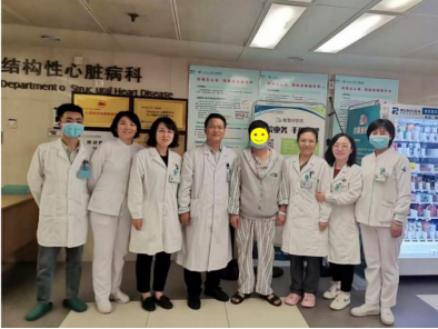 术后患者恢复良好,术后第1天患者即下床活动,术后复查心脏超声提示:封堵器形态、位置良好,房水平未见分流;复查肝脏超声提示:肝静脉血流通畅,肝脏穿刺口处理良好,未见出血。术后观察3天,患者活动后无任何不适,于4月10日出院。患者及家属对整个诊疗团队万般感激,不停地竖起大拇指说道:“感谢诊疗团队精湛的医术与高尚的医德,交大一附院真棒!”。