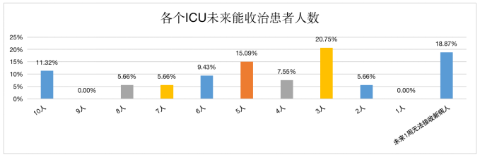 近日陕西省保健学会重症医学分会和陕西医师协会重症医学分会联合进行了陕西地区ICU疫情期间收治患者情况调查,我院重症医学科完成了其所有的调查及分析工作。根据其结果,随着医护人员不断感染,陕西省内各ICU的扩容工作挑战巨大,约68%的ICU在未来一周能收治的病人数不超过5人,其中有近1/5的ICU未来一周都无法收治新患者。