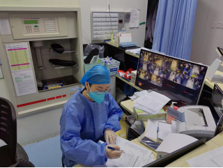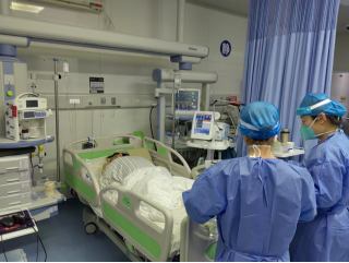 在院内,刘昱副主任、张蕾主治医生和赵璇主管护师带领包括进修医生在内的8名医生和5名护士,建立“新冠重症救治团队”,利用原有EICU病房资源来专门收治新冠重症患者,那里共设有17张床位,大大增加了新冠重症患者收治数量。刘昱副主任和医护人员一起,在感染后仍旧坚守岗位,挑起新冠重症患者救治重任不放松,守住疫情防护的最后一道防守线。除此之外,院内急诊科、神经内科、神经外科、消化内科、心血管内科等科室分别派医生护士支援重症病房工作。面对院内支援重症工作的医护人员对重症专业不熟悉的问题,重症医学科承担了这部分职工的培训与管理工作。切实执行着院内重症床位的扩容工作,保障重症患者能够得到有效收治。