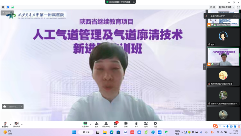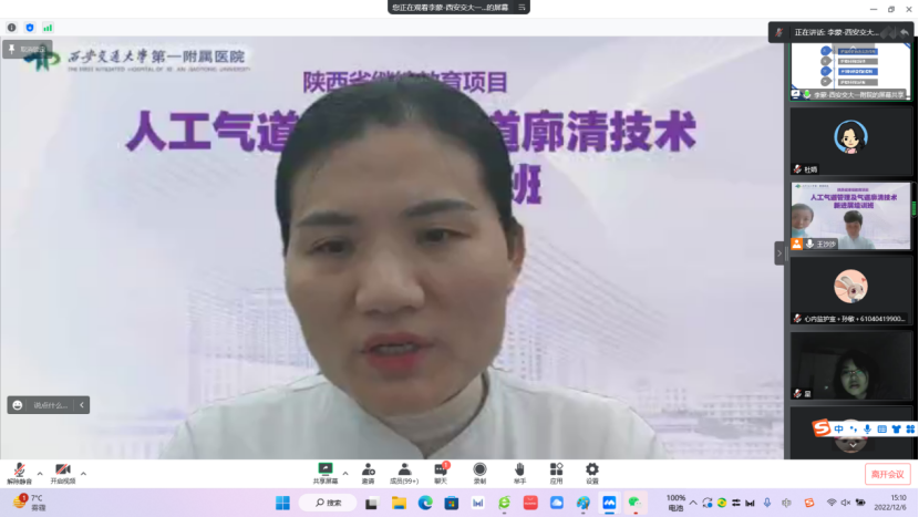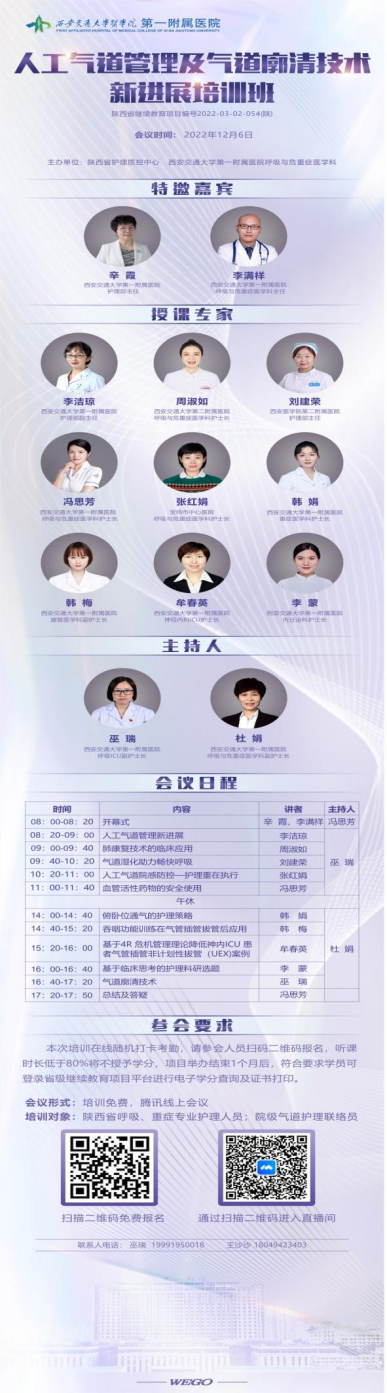 随着医学的发展,气道管理与气道廓清技术成为危重症患者管理的基础和重要内容之一,为了更好的传递此领域最新的管理理念与技术,引领护理同仁完成从指南到实践的转化,提升护士在气道护理领域的专科能力,提高危重症患者护理质量与安全,在省护理质控中心以及我院护理部大力支持下,陕西省继续教育项目——气道管理与气道廓清技术新进展培训班于2022年12月6日顺利举办。本届培训班秉承以往"学以致用"的传统,在课程设置上强调临床实用性,以规范化、直观化和参与化为特点,将理论知识与实践操作更加立体的结合起来,使学员能全方位理解和掌握气道管理和气道廓清技术的临床规范化技能。