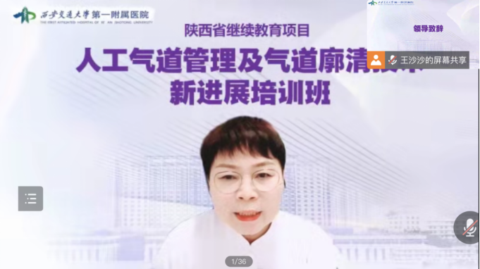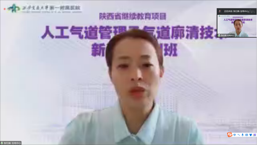 开幕式由冯思芳护士长主持,特别邀请了西安交通大学第一附属医院护理部辛霞主任、呼吸与危重症医学科李满祥主任和来自全省的护理同仁约1000人线上参会。首先由辛霞主任致欢迎辞,辛霞主任对各位嘉宾及护理同仁的到来表示欢迎,并感谢李满祥主任和冯护长所带领的团队,指出本次培训班课程内容丰富实用,从专业理论到技术操作、康复护理、药物安全使用、护理科研以及实践案例等多个领域方面展开交流。希望护理人员能够开拓视野,博采众长,提升专业能力,提高危重症患者的护理水平,推广气道管理的新思路及实践经验。