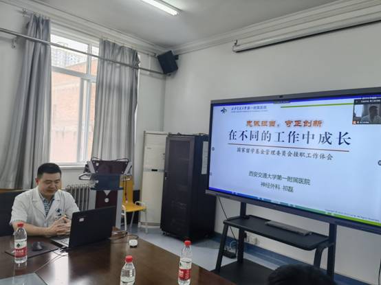 学习分享会上,四位青年管理骨干依次介绍了自己在国家部委借调的学习锻炼经历,我院教学部副部长、神经外科主治医师祁磊以《在不同的工作中成长》为题,详细介绍了国家留学基金管理委员会及相关业务,他将挂职期间的工作经历梳理为“四个坚持”,即“坚持政治学习,坚持履职担当,坚持医院发展,坚持自我提升”,并用精炼的“忠诚,担当,守正,创新”八个字总结在国家留学基金委挂职一年的体会和感悟。接收受理单位推荐材料近9000份、电话答疑3905通,回复咨询邮件3461封,这些数字的背后体现了临床青年医生在行政管理岗位得到扎实的锻炼,同时他时刻牢记自己的使命职责,通过自己的医疗所长来服务所挂职的部门,也积极为医院留学方面争取了相关的资源。