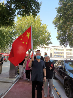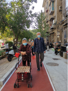 此次健步走活动,在医院北家属区健身广场领卡后出发,沿家属区新建成的职工健康步道,共计往返两圈近900米。途中共设置了四个打卡点,即11号楼东北角、8号楼东北角、6号楼西南角、小超市西北角,在每个打卡处安排两名工作人员盖章打卡。为防止老年人在行走途中走错或发生意外,办公室在沿途设置了医护人员及工作人员全程保驾护航,指引老人安全行走。参加活动的很多老人尽管年事已高,腿脚不是很灵活,但是大家精神抖擞,一路上欢声笑语,三三两两结伴而行,迈着矫健的步伐,向着终点努力进发。迎风招展的彩旗,更是增添了现场的热烈气氛,形成了一道道亮丽的风景线。