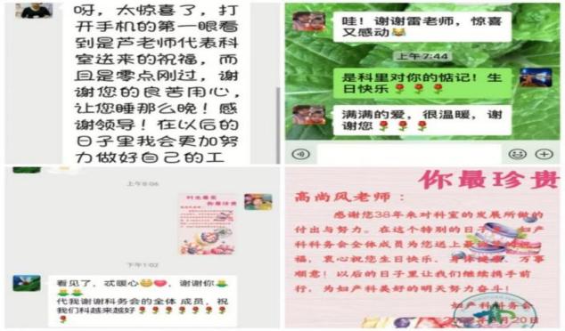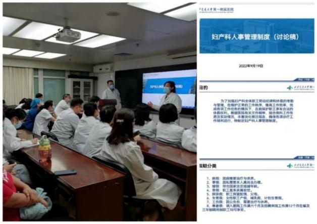 8月,科室第一时间召开科务会,明确各成员分工,参照医院相关制度,形成了科室人事管理制度,并在科室进行了学习和讨论,要求科务会成员以身作则,严于律己,用此种方式做到科室管理规范化制度化。9月,对照国考指标,针对医院通报的第一季度耗材、药品使用情况,科室高度重视,狠抓整改落实。妇产科成立专项小组,由科主任、党支部书记任组长,医疗主任任副组长,开展科室自查自纠整顿工作,狠抓耗材、药品不合理使用情况,同时科室主任与部分员工进行了逐一谈话,深入了解情况并指出改进方向。科室还邀请了黄辰教授就“国家自然科学基金选题”做了精彩讲座及答疑,规定每周二晚上开展前沿文献学习,搭建良好的科研学习平台,营造良好的学术氛围,提升科研水平能力。此外,科室在加强文化建设方面也独具匠心,为每一位员工制作生日电子贺卡为员工送上祝福,提升了职工幸福感和参与感。在科室日常管理方面,设立“金点子文化”制度,广开言路,不仅营造了良好的科室氛围,更鼓励员工为科室的发展献策献力,以集思广益、集百家之长提升学科建设。