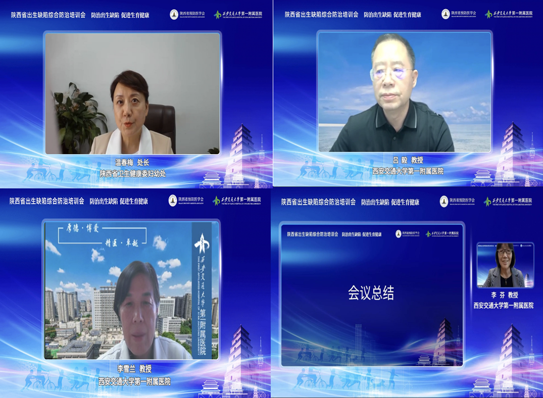 2022年9月28日,正值“中国出生缺陷活动月”,在陕西省卫生健康委妇幼健康处的指导下,中华预防医学会妇女保健分会的支持下,由陕西省遗传疾病诊断中心,陕西省预防医学会妇女保健专业委员会主办,西安交通大学第一附属医院承办的“陕西省出生缺陷综合防治培训会”于线上成功举办,邀请了中国出生缺陷监测中心朱军主任、中华预防医学会妇女保健分会主任委员钱序教授、中国疾病预防控制中心慢病中心主任王临虹教授、北京妇产医院阴赪宏院长等出生缺陷领域知名专家及我省各级医院致力于出生缺陷防治的相关专业人员共计6075人次在云端相聚。