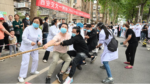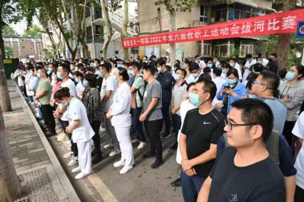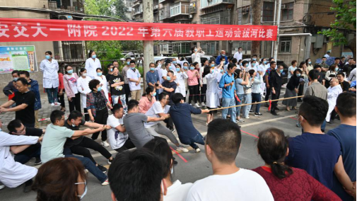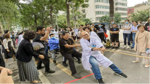 为活跃医院体育文化生活,推动我院全民健身运动,深入贯彻落实《西安交通大学促进教职工身心健康二十条》文件精神,我院2022年教职工第六届田径运动会将于10月下旬举行。为积极营造全院教职工运动健身氛围,增进各联合部门工会凝聚力、向心力,确保运动会集体项目顺利进行,9月22日,拔河比赛开幕式在北家属院活动广场拉开帷幕。院党委副书记、工会主席冯广林,党委委员、组织统战部部长、比赛仲裁长高琰,工会副主席王晓琴,工会办公室主任陈效兰以及各联合部门工会领队、参赛选手代表等参加了开幕式。开幕式由王晓琴副主席主持。