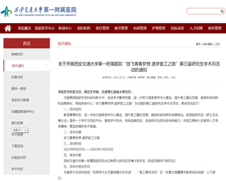 多点突破、开展多维宣传。今年研究生学术月活动在主题的确立上,主要突出“梦”字,意在引导和激励广大青年学生和教师“放飞青春梦想、逐梦医工之路”。“医工青年讲坛”将邀请知名青年专家学者,以国家医学中心建设为中心,为广大师生做关于研究方法、学术引领、医工结合等方面的专题报告,期待产生多学科思想的碰撞与融合,激发研究生的学习热情与创新精神。在前期宣传中,不仅通过办公OA系统、医院网站发布通知,更通过企业微信、工作微信群等方式精准推送,阅读量、关注度大幅攀升,为后期活动顺路开展奠定了坚实的群众基础。