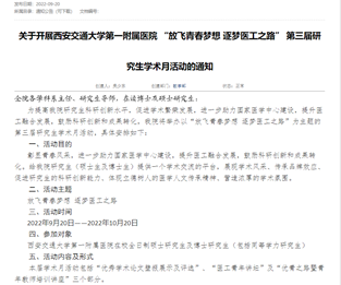 为提高我院研究生科研创新水平,促进学术繁荣发展,进一步助力国家医学中心建设,提升医工融合发展,鼓励科研创新和成果转化,我院于9月20日至10月20日,举办以“放飞青春梦想 逐梦医工之路”为主题的第三届研究生学术月活动。