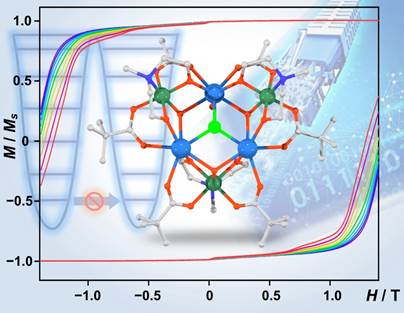 本研究通过在3d-4f分子磁体中引入中心氟桥,诱导铁磁交换,有效抑制了零场下的量子隧穿效应,得到了具有高性能的单分子磁体(该分子磁体的矫顽场可达1.3 T,剩磁比高达97%),非常罕见。