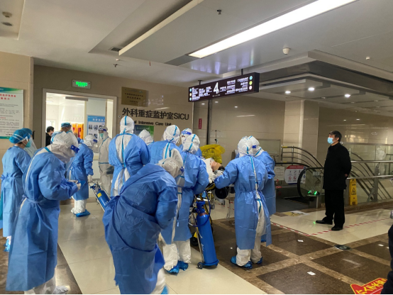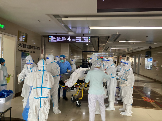在疫情特殊情况下,医院始终坚守在急危重症患者抢救的一线,冲锋在前,坚持急危重症患者救治不断线,彰显了医疗国家队的使命担当。