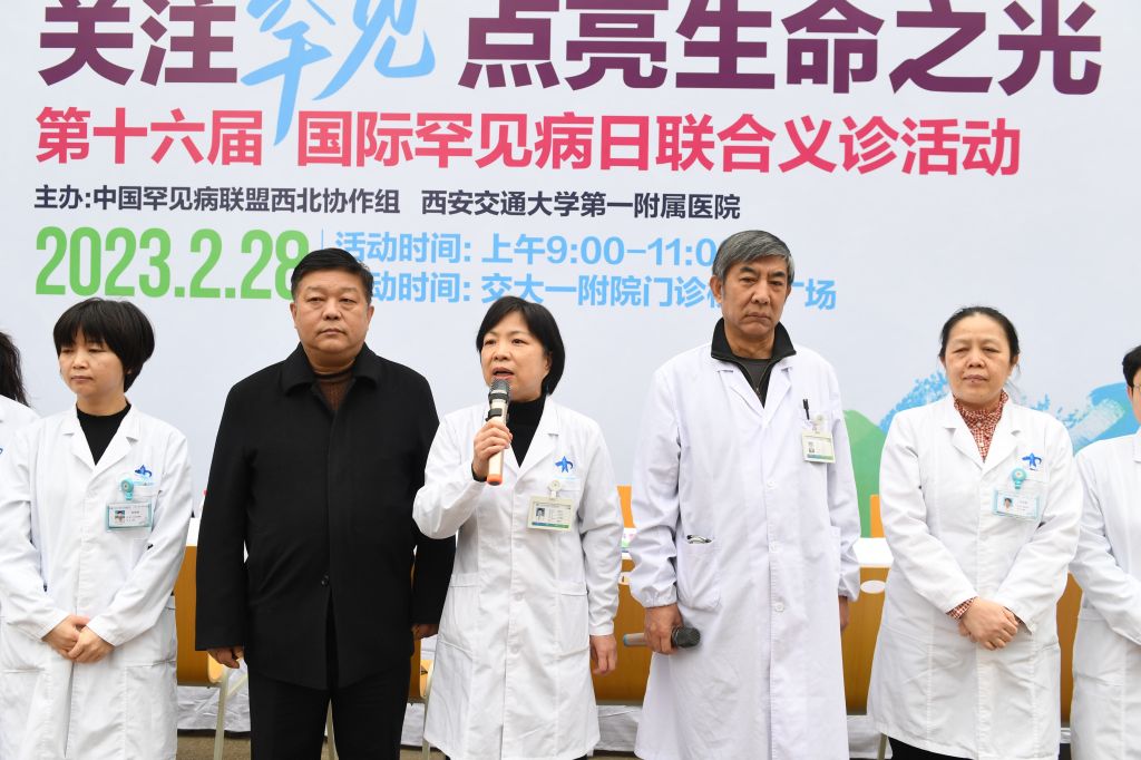 医务部李红霞部长表示,罕见病病种繁多,我国是罕见病大国。国家近年来出台了一系列政策,以实现罕见病的早诊早治。2018年,国家公布第一批罕见病目录,包含121种罕见病,并建立了国家罕见病诊疗协作网体系。医院作为中国罕见病联盟西北协作组及陕西省罕见病诊疗协作网牵头医院,有责任及义务推动区域罕见病诊疗能力提升。通过本次举办多学科义诊进一步提升罕见病早期诊断率。此外,为提升罕见病知晓率,医院将举办为期4天的罕见病培训,让全社会携手关注罕见病。近三年,医院从以下几个方面推动罕见病诊疗工作:第一,建立院内罕见病管理架构,推动罕见病管理工作。第二,罕见病诊疗知识普及,通过举办各种培训及讲座让区域内基层医院认识罕见病,提升罕见病诊疗能力。第三,实现罕见病及时转诊,利用分级诊疗协作网络实现基层罕见病患者上转。第四,开展罕见病多学科讨论,通过多学科讨论平台为患者提供一站式诊疗服务。第五,拓宽罕见病患者就诊渠道,建立罕见病专科门诊及线上诊疗平台,让罕见病患者能够及时就诊。第六,保障罕见病用药,通过药物临采的方式,提高罕见病药品可及性。