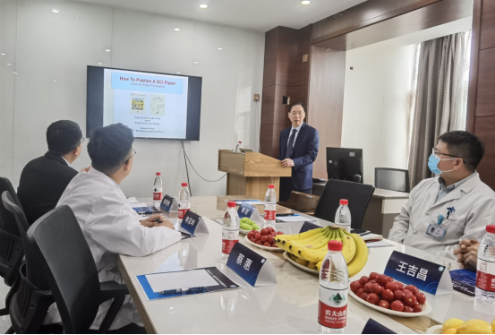 第2部分,张玮教授作为血管方向顶尖SCI杂志《血管外科年鉴》共同主编,向血管外科青年医师倾情分享了SCI文章的撰写过程中的注意事项。张玮教授结合自己丰富的审稿经验,鞭辟入里地分享了SCI论文写作过程的方法和要点,深入浅出,干货满满。接着血管外科的青年医师也汇报了目前科室的研究成果,王吉昌副研究员汇报了二甲双胍在相关肿瘤治疗中的应用及研究,刘超博士汇报了OCT在下肢动脉中的应用以及外周载药支架在本中心的真实数据,申泽坤博士汇报了外泌体下肢动脉缺血中的应用。大家的汇报得到了张教授的连连赞叹,感叹我院血管外科发展之快速、技术之全面、科研之前言。
