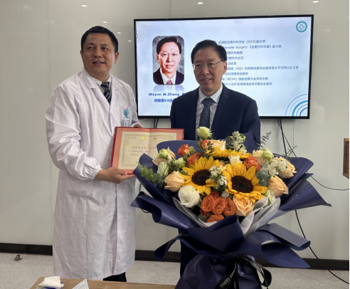 张玮教授作为一位华裔美国血管外科医生,在国际血管外科专业领域卓有成就,他多年来为中国血管外科事业的发展倾注了极大的热情,为中国血管外科专业发展与国际接轨和交流给予了极大的帮助,陕西省保健学会血管外科专业委员会讨论决定,聘请张玮教授为第二届陕西省保健学会介入血管专业委员会顾问,由禄韶英主任为张玮教授颁发聘书。张玮教授也表示,以后会加强与我院血管外科的合作,提供更多学术、临床及技术方面的支持及指导。