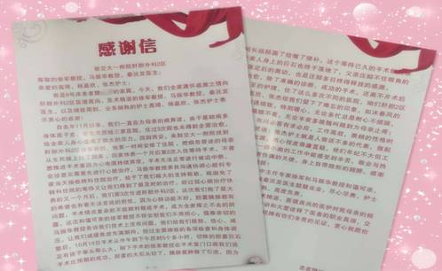 谨以此信,感谢这些医术精湛、医德高尚的医护对我母亲的倾力付出和无私关爱,你们用行动和大爱诠释了医者的职业真谛,交大一附院肝胆外科的声誉和金子招牌有你们辛苦的见证!衷心祝愿你们身体健康,事业更近一步!