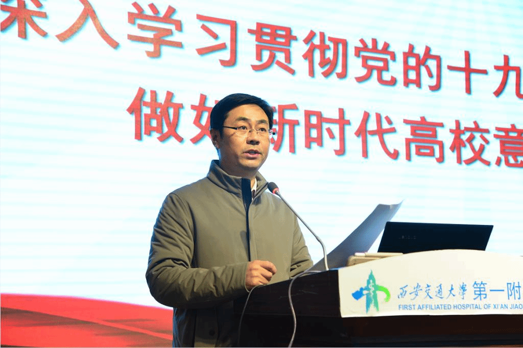 根据医院党委工作安排,12月6日下午,我院举办学习贯彻党的十九届六中全会精神做好新时代高校意识形态工作专题报告会,特邀学校党委宣传部兼教师工作部副部长梁辉作报告,院领导、两委委员及各党总支、党支部书记代表参加现场学习,广大党员干部500余人次通过网络直播形式参与线上学习。报告会由宣传部部长王睿主持。