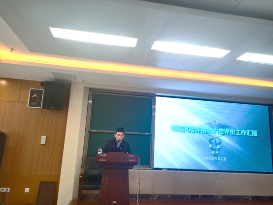 审计部赵平部长通报医院2022年内控第三方评价情况,包括内部控制评价和风险评估结果,重点通报了内控评价发现的缺陷情况和风险评估排名前十的风险。