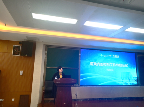 党委·院长办公室(内控管理办公室)毛慧萍副主任重点围绕医院2022年内控工作开展情况、2023年内控工作计划和“整改提升年”活动方案等方面,通报了医院内部控制工作整体情况。