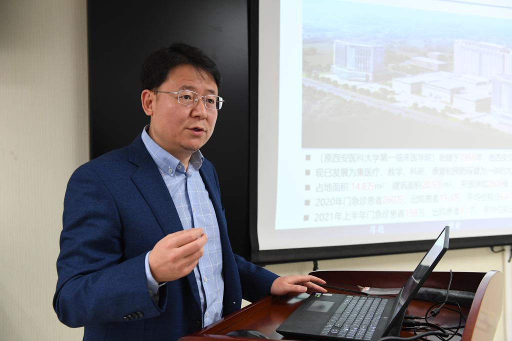 佘军军院长助理从医院概况、国家医学中心建设背景、建设进展、重点项目推进及阶段性成果等方面,介绍了医院和国家医学中心建设情况。