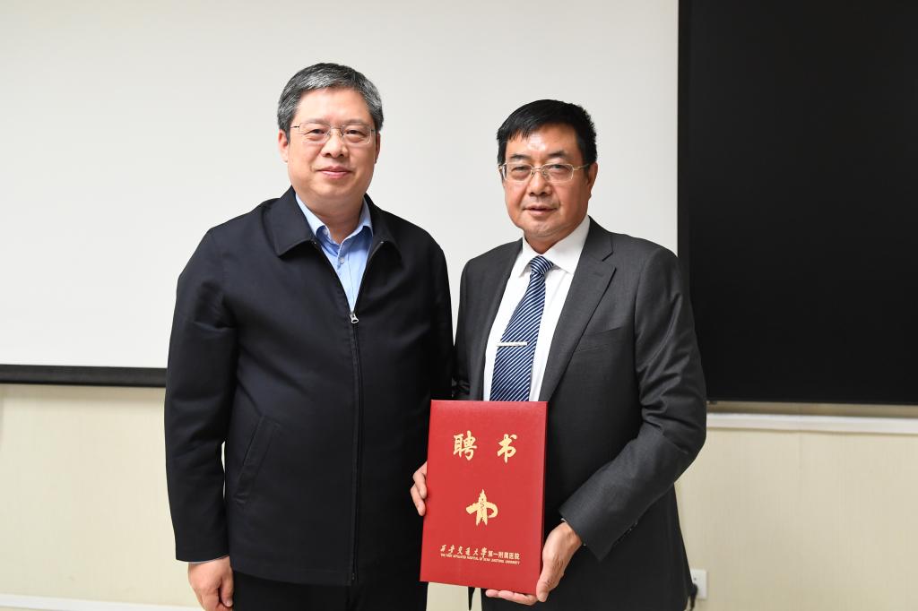 马辛格书记为受聘教授颁发西安交通大学第一附属医院聘书。