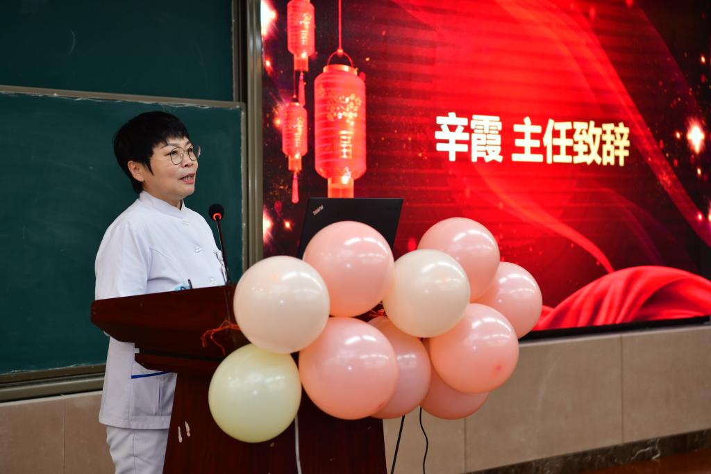 西安交通大学第一附属医院护理部辛霞主任致辞。她强调护士人文关怀的能力和情怀,不仅要体现在专业知识上,更体现在临床心理护理水平上,精神心理专科知识和技能是人文关怀的支撑。精神心理专科护士是医院各个专业都急需的,期望首届省级精神心理专科护士能够像一颗颗蒲公英种子,在各自单位播散人文理念,应用并推广精神心理护理方法和技能,推动全省护理人员精神心理护理专业核心能力的提升。