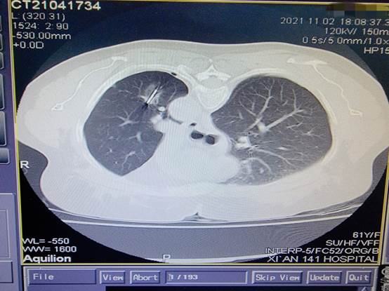 来自商洛市61岁的刘女士2年余前因左肺癌于我院行“胸腔镜左肺上叶癌根治术”,10天前复查行胸部CT发现左肺下叶结节,进一步行PET/CT示:左肺下叶结节,核素摄取异常,考虑转移癌。患者慕名来到付军科主任领衔的东院区胸外科就诊,付军科主任仔细查阅患者既往病历资料,临床诊断为转移结节,由于2年前已经实施肺叶切除术,经多学科讨论后决定给患者行肺结节微波消融术。11月2日下午,在医学影像科协助下,东院区胸外科团队成功开展了东院首例肺结节微波消融术,整个治疗过程非常顺利,患者无明显不适及并发症发生,术后复查胸部CT显示微波消融范围理想,病灶位于消融靶心。