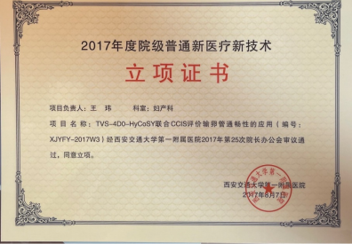 王玮在“能量多普勒超声在评估妊娠滋养细胞疾病诊治”这方面的研究不仅获得了西安交通大学新医疗技术的认证,并且能够有效地协助临床评估疾病的诊疗效果及预后。她关于“早中孕期超声预测妊娠期高血压疾病”的研究也取得临床的认可,让这类妊娠急重症合并症可以早起预测、早起干预、早起诊治,减少母婴危险的发生。