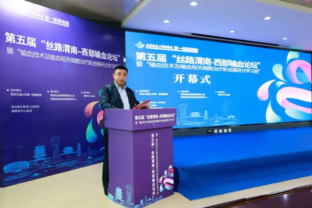 11月3日——5日,由西安交通大学第一附属医院主办,渭南市中心血站承办的第五届“丝路渭南-西部输血论坛” 暨国家级继教项目“输血技术及输血相关细胞治疗新进展研讨学习班”在渭南市线上举行,会议由一附院输血科王宝燕主任主持,渭南市卫健委领导出席了开幕式并致辞。