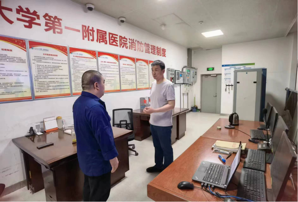 4月18日,北京市丰台区长峰医院发生重大火灾事故,截止19日造成29人死亡。为深刻汲取火灾事故教训,进一步夯实医院消防安全责任,落实好安全防范措施,按照吕院长、马书记指示,王亚峰院长助理立即安排保卫部、总务部、基建办等部门在全院范围内联合开展全面安全排查整治行动。检查过程中,各检查组结合各区域用电情况,逐一排查了各部门的电气线路情况,随后实地查看了消防控制室、消防泵房、配电间、住院部、门诊楼、实验室以及在建工地等重点部位,详细检查了各楼宇疏散通道、安全出口是否畅通,用火、用电是否规范,危险化学品管理情况、消防设施器材完好情况、值班人员在岗在位以及施工现场安全措施等情况。