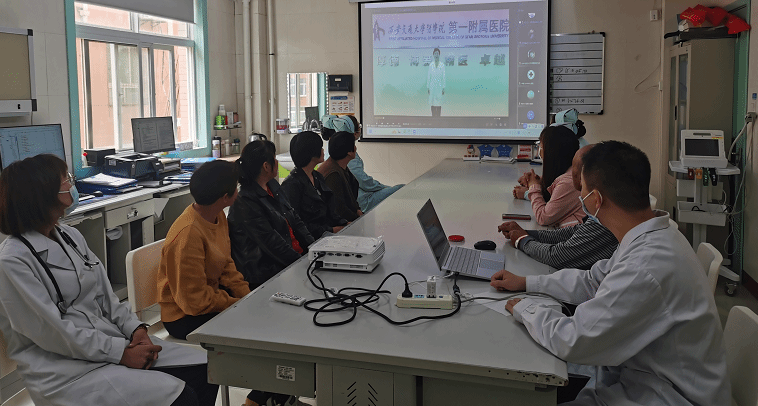 之后,范粉灵教授带领的西安交大一附院肺动脉高压多学科中心医患人员、任骞主任带领中国中医药大学孙思邈医院心内科医患人员、王琦主任带领的汉中市人民医院心内科医患人员、刘敏龙主任带领西安市大兴医院医患人员、何希站主任带领陕西省森工医院心内科医患人员,五市区专家共同回答来自省内外患者及家属的问题,与其患者一起互动,共同讨论我省肺动脉高压发展之路,为我省广大患者服务。最后,五家医院医患在线同时聆听肺动脉高压专题知识讲座,在患教讲座中,范粉灵教授专题为患者提供了“肺动脉高压治疗最新进展”,西安交大一附院医保办的安小芳老师专门为患者讲解了肺动脉高压药物医保政策解读,裴鸣护士长介绍了肺动脉高压患者自我护理。