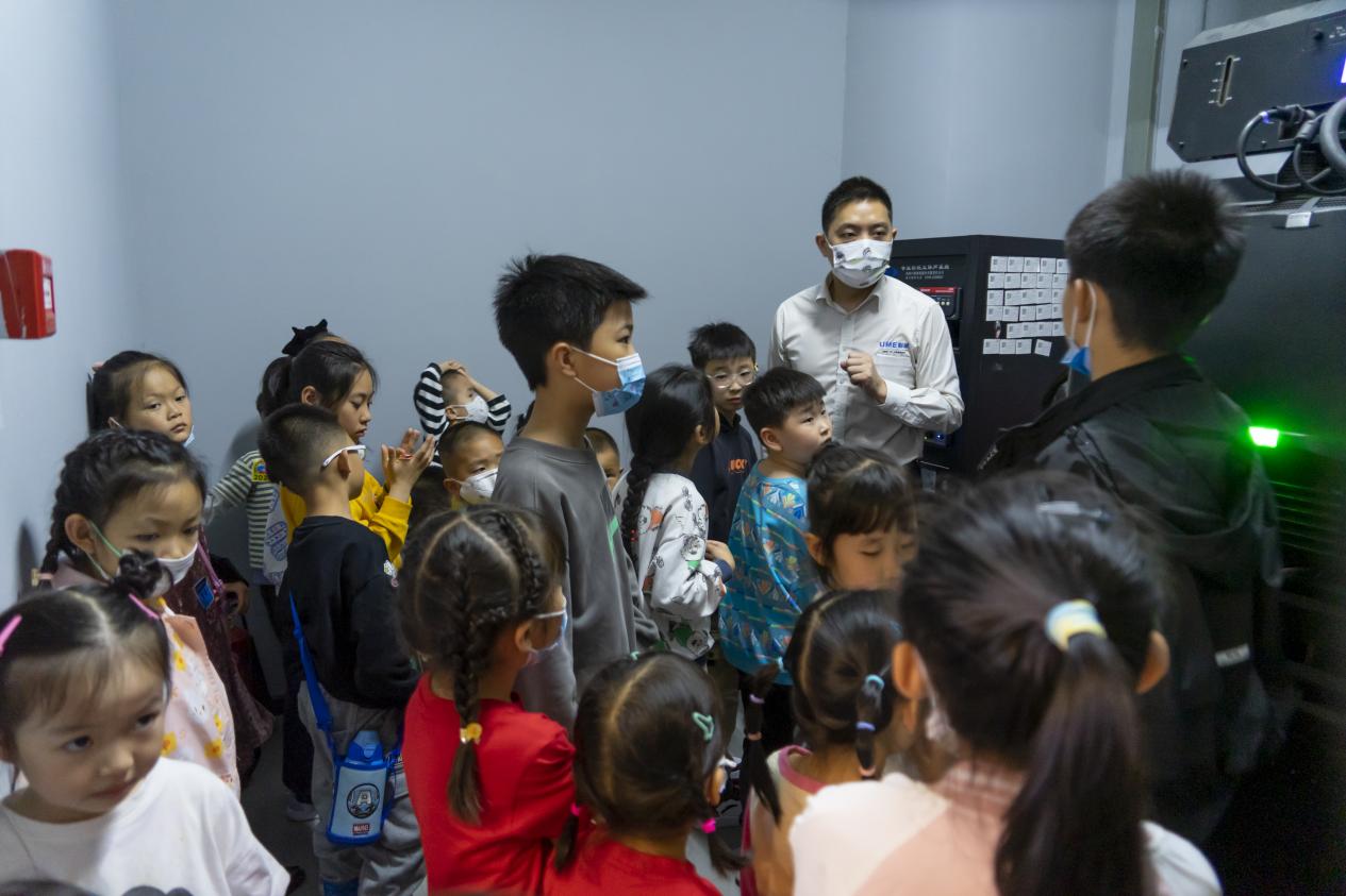 神秘的影院放映室对于孩子们来说更是“别有洞天”,胶片放映机、激光放映机、放映服务器、音响系统、胶片、数字影片、录像带……一个个新奇的设备让孩子们目不暇接,在工作人员的介绍下,小朋友们初步了解了电影放映系统的作用及工作原理,近距离感受到了电影艺术的强大魅力,在心中种下电影启蒙的希望火种。