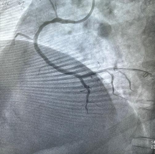 患者李X,男性,60岁,2年前因劳累性心绞痛在外院做冠脉造影提示RCA 2段末狭窄约80%,建议支架治疗。但患者对金属支架永久存留体内具有极大的顾虑,仅接受内科保守治疗。近期患者胸痛频繁发作,药物治疗效果不佳,遂慕名来青海省人民医院进一步诊治。
