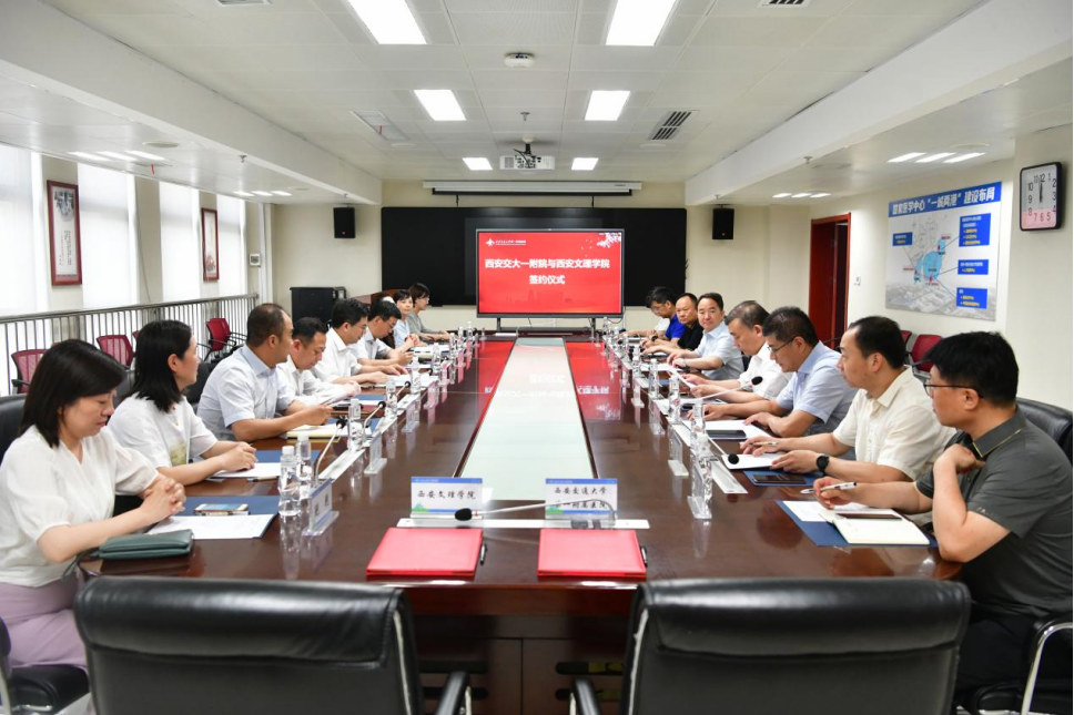 6月15日中午,西安交通大学第一附属医院与西安文理学院签订战略合作协议仪式在交大一附院科教楼707会议室举行。西安文理学院陈刚校长、龚杰昌副校长、党政办、工会办公室、服务地方工作办公室、美术与设计学院、音乐学院负责人及教师代表出席;西安交通大学第一附属医院常务副院长王茂德,医学部副主任兼科学技术与学科建设处处长、第一附属医院副院长马现仓,院长助理、党院办主任韩建峰和工会、宣传部、医务部、患者服务中心、组织统战部负责人及科室骨干出席活动。韩建峰院长助理主持签约仪式。