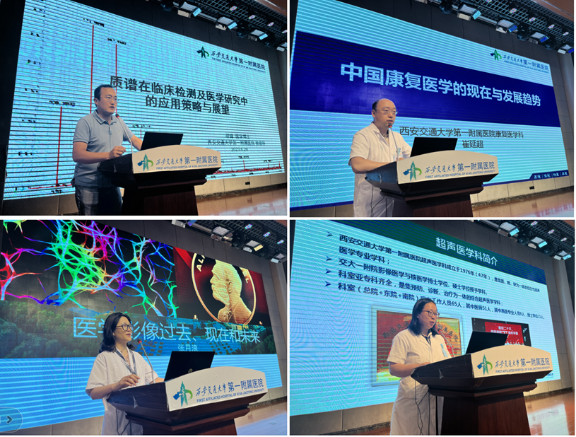 西安交通大学生命学院党委书记刘茹、生物医学工程系副主任周秦武和秘书刘颖,以及我院常务副院长王茂德、教学部部长黄燕萍、医学影像科主任杨健、副主任张月浪,检验科主任王晓琴、副主任胡健,超声影像科主任阮骊韬、住院医师肖祎,康复医学科副主任崔延超和教学部郭雯雯老师共计150余人参会,大家首先共同观看了一附院宣传片。