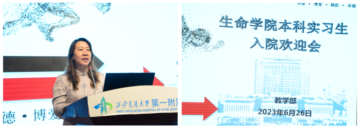 为深入贯彻落实学校关于“医工交叉强质”的战略部署,加快推进我校医学教育创新发展,助力国家医学中心建设,一附院与西安交通大学生命科学与技术学院(以下简称生命学院)于2022年7月合作创建了“医工交叉实习基地”,今年6月西安交通大学生命学院2020级、2021级生物医学工程专业本科生共计130人将来院实习,教学部于6月26日下午在科教楼三层报告厅举办了生命学院本科生入院实习欢迎会暨培训活动,会议由教学部李雁副部长主持。