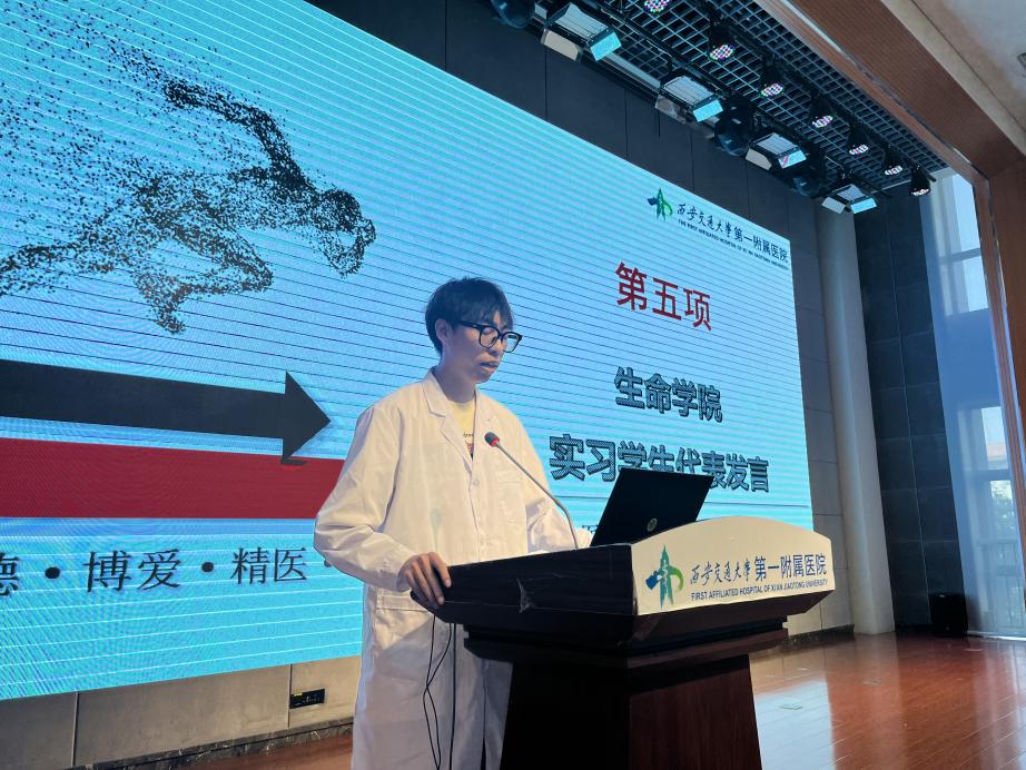 王茂德常务副院长受邀致辞,他首先对生命学院本科生来院实习表示热烈欢迎,勉励同学们在影像、超声、检验、康复等科室实习时要以临床需求为导向,发挥交大“强工科+大医科”的优势,通过医工交叉融合不断探索新医疗新技术,改进临床仪器设备,切实解决临床诊疗中的“卡脖子”问题,为健康中国建设贡献青春力量。同时,希望今后能够常态化开展医工交流合作,开启两院合作育人的新篇章。