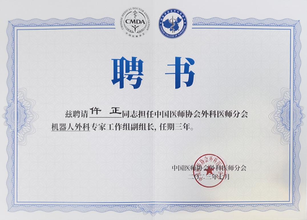 仵正教授当选中国医师协会外科医师分会机器人外科专家工作组副组长