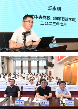 为进一步完善医疗机构公共卫生安全应急响应体系,提升防范化解医疗领域安全风险的水平,增强医院领导干部“应对重大挑战、抵御重大风险、克服重大阻力、解决重大矛盾”的能力,7月17日下午,第六次干部培训暨“学科建设大咖谈”第三期活动在科教楼三层报告厅举行,培训特邀中共中央党校应急管理教研部首席专家王永明教授莅院,作题为“统筹发展和安全 防范化解重大风险”主题报告。全体院领导、中层干部及全院职工以线上线下结合的方式共同参会。党委副书记冯广林主持会议。