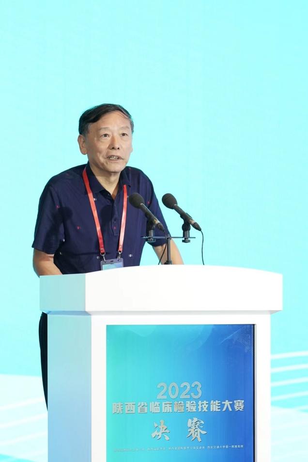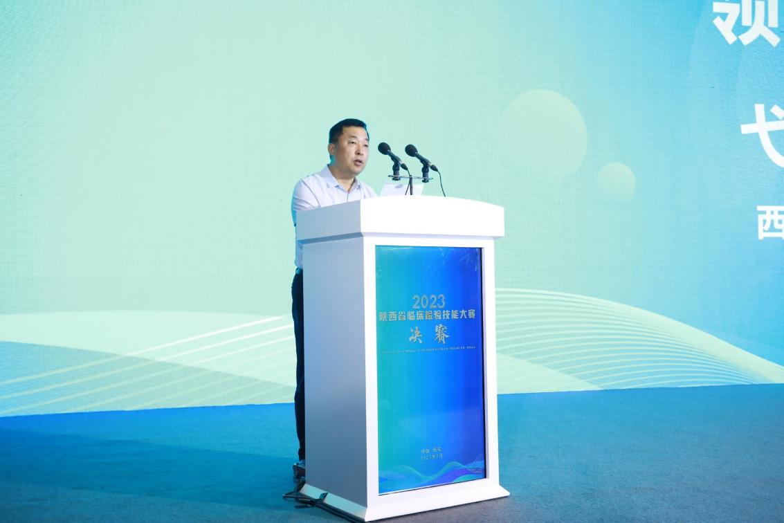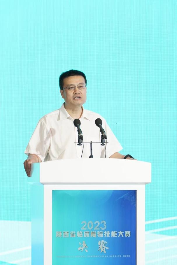 弋景峰在致辞中表示,希望通过本次技能大赛,进一步激发广大医务工作者不忘初心,牢记使命,奋勇拼搏,争先创优的积极性主动性,进一步在全社会推动形成尊重劳动、崇尚技能,鼓励创造的良好风尚,为实现陕西高质量发展,建设健康中国贡献医学检验人的智慧和力量。