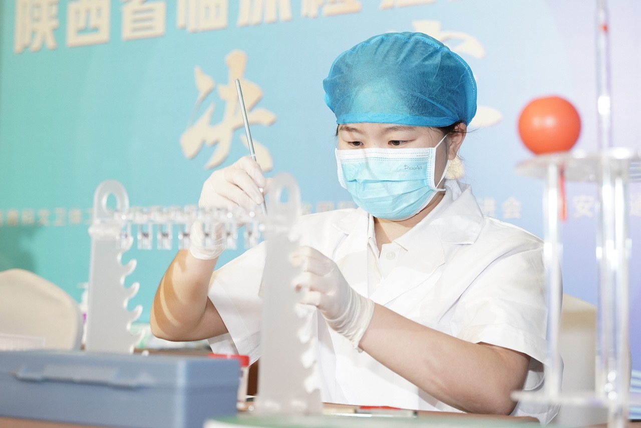 西安交通大学第二附属医院刘泽世作为选手代表进行宣誓,表示在比赛中自觉服从大赛安排,严格遵守比赛规则和赛场纪律,发挥技能专长,赛出成绩、赛出水平、赛出风格。