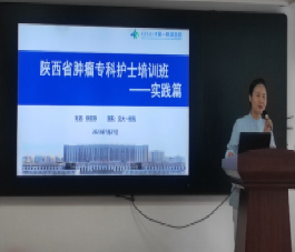 护理部辛霞主任首先致辞,她对培训班圆满举办给予肯定,并高度赞扬了本期学员的开场表演,看到了学员的精神面貌,也看到了学员的努力上进,她指出你追我赶的态度,积极向上、踊跃进取,才是青年护士应有的样子。通过本次标准化规范化的培训,学员们提高了肿瘤专科技能水平,夯实了理论基础,今后可以为肿瘤患者提供更加安全有效的照护。她强调医院的高质量发展离不开团队每一位成员,尤其是专科护士的贡献。祝愿每一位肿瘤专科护士在各自的工作岗位上发挥本专业的引领作用,立足新时代对肿瘤护理发展的高需求,严于律己,齐心协力,引领我省肿瘤护理专业领域的发展和变革。