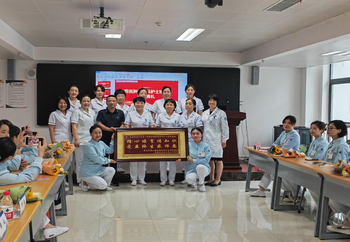 尹丽娜、张胶琼、翟玩作为本期学员代表进行了发言。三位分别从理论学习、临床实践、教学科研三方面进行了总结汇报,对医院领导、授课专家、带教科室及临床带教老师等表达感谢,并送上了“精心培育传知识、受益终生感师恩”牌匾。两月来,各位授课专家进行了高层次、全方位、多角度的授课指导,学员们从理论学习到临床实践,从课件制作到综述及开题报告的撰写,不断提升护理知识和业务水平,丰富专业内涵。大家将以结业为新的开始,把学到的知识、理念和方法用到实际工作中,在以后工作中展现新作为,作出新贡献。