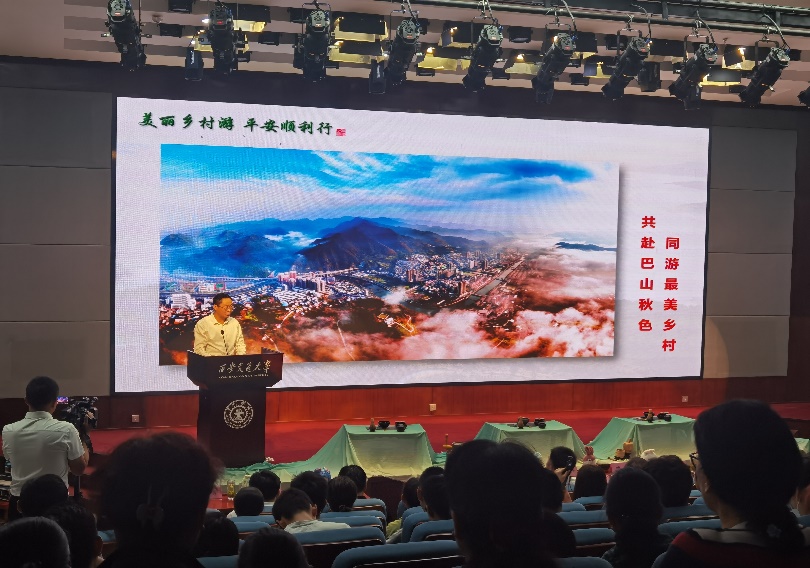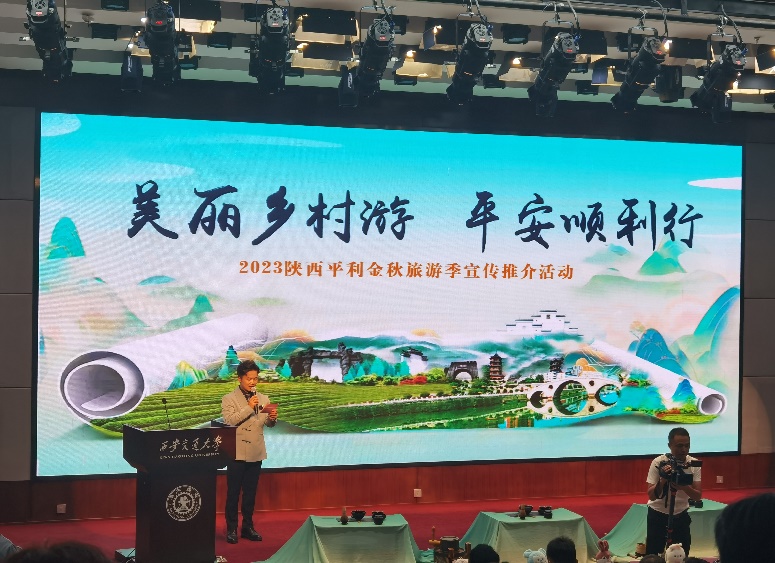 22日上午9时40分,平利县委书记杨军出席活动并上台推介平利精品旅游路线;杨书记首先表示:平利人民对西安交大长期以来给予平利的帮助和支援表示衷心感谢;推介了平利文旅资源、精品旅游线路及优惠政策,邀请交大师生踏上“美丽乡村游 平安顺利行”金秋旅游之旅,县文旅局推介了国庆文旅活动举办情况。随后4个镇的代表分别对平利县5个A级景区进行优势旅游资源及优惠政策解读,受到交大师生的广泛关注。