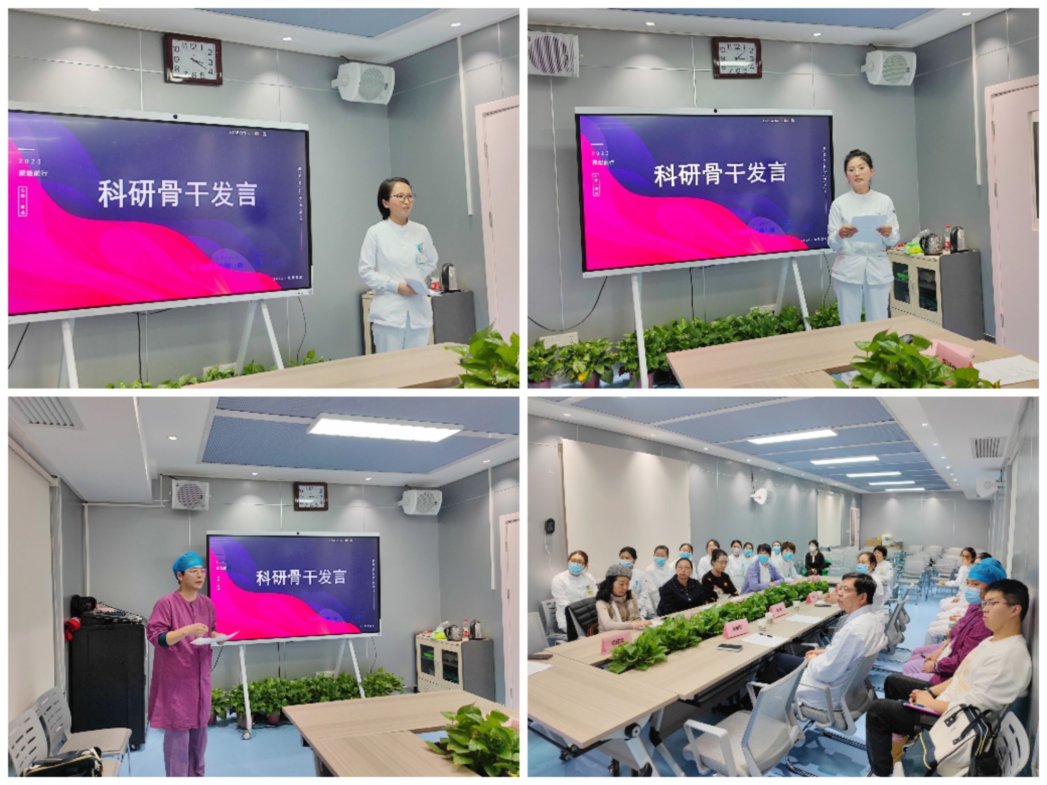 袁祖贻院长发表致辞,袁院长对本年度“医护协作创新科研团队”取得的成绩给予了认可。他指出科室科室为大家搭建平台,提供支持,要充分利用优势资源,并持续跟进项目推进的效果,不断调整工作方案,建立长效机制,提升心血管内科护理科研整体水平,在全院起到模范带头作用。同时,袁院长也提到工作处处有科研,并从护理角度举例说明临床工作中丰富的科研方向和思路,让大家茅塞顿开。临床研究中心郑捷副主任在致辞中特别鼓励本团队护理人员积极开展科研相关工作,并表示会在专业培训、课题设计、数据统计分析、临床研究注册等方面都会给予团队大力的支持。心血管内科吴岳副主任对团队成员取得成绩给予了认可并提出了几点希望和建议,他指出科研源自于临床,更要服务于临床,护理人员要善于从临床工作中的实际问题出发,应用科研的思维和方法解决问题,打造富有特色和创新性的护理亚专科项目,不断提升专科护理学术影响力。