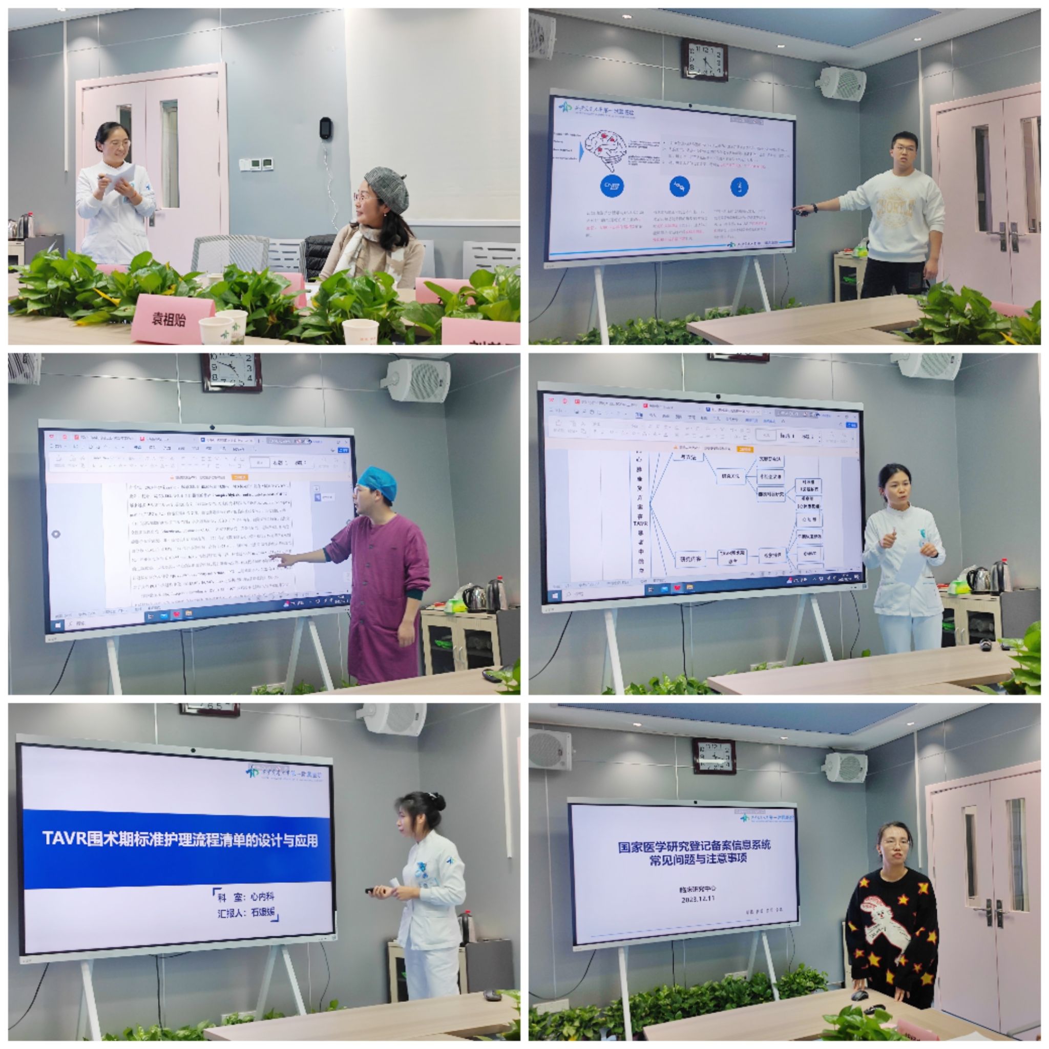 最后,由医学部护理系李宁副教授针对本年度预申请院基金的5项课题给予现场辅导。首先,东院区的刘星悒老师汇报课题--体外反搏治疗在冠心病患者心脏康复中的效果观察,李宁副教授对选题、纳排标准、技术路线图给予详细的指导。其次,本院区刘世康汇报课题--经导管主动脉瓣置换术后老年患者早期认知功能改变影响因素及风险预测模型构建,李宁副教授对内容的创新点、科学性、课题设计给予建议和指导。接下来,本院区罗轩汇报课题--复杂PCI术后患者下肢深静脉血栓风险预警模型的构建与评价,李宁副教授对临床发生深静脉血栓的预测、复杂PCI术的名称给予建议和指导。再下来,本院区马姣汇报课题--基于ERAS理念的医护一体化护理模式在TAVR患者中的应用研究,李宁副教授对护理模式的构建、创新点、量化指标给予指导和建议。最后,本院区石媛媛汇报课题--TAVR围术期标准护理流程清单的设计与应用,李宁副教授对护理流程清单的设计及使用给予详细的指导和建议。李宁副教授对5个项目从课题方向的选择、创新点 、设计、干预措施、量化指标方面都给予详细的指导和建议。各成员之间相互借鉴,学习与碰撞,思路逐渐清晰。