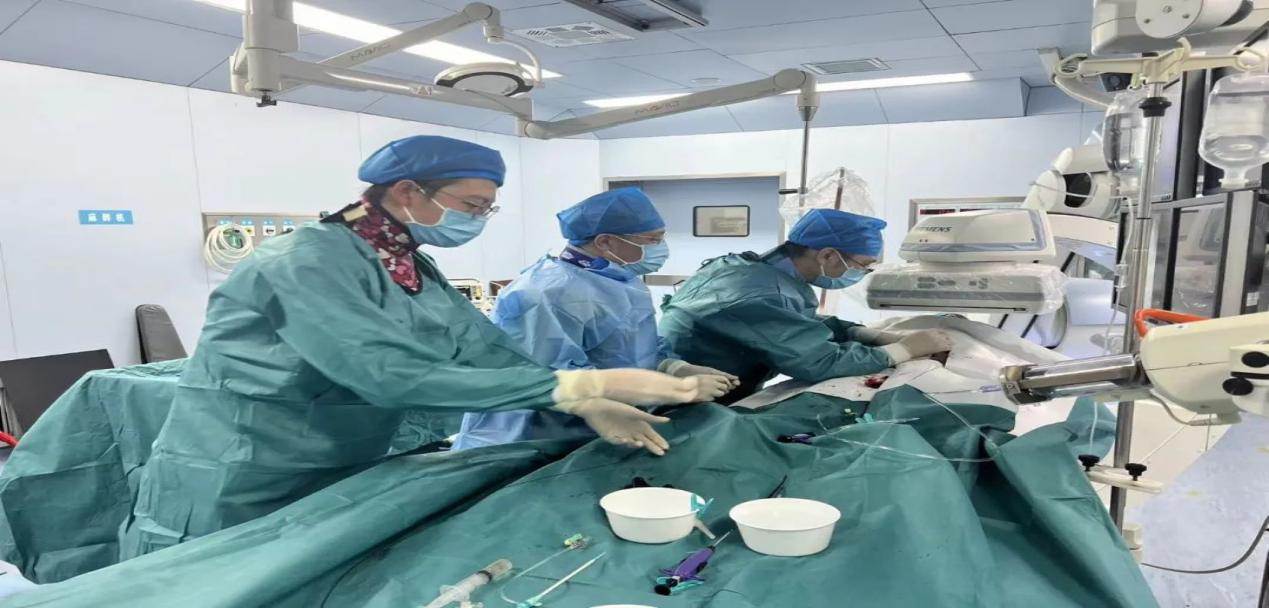 经过术前准确测量,刘建林教授团队为彭奶奶制定了详细的手术方案,由刘建林教授主刀,白和平副主任,刘超主治医师、马锦锋主治医师和李栋医师共同配合,在局部麻醉下,经过1小时的紧张手术,顺利完成了陕北地区首例超细输送系统覆膜支架(Minas)置入术。术后患者恢复良好。