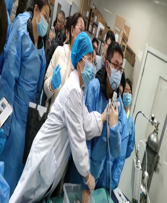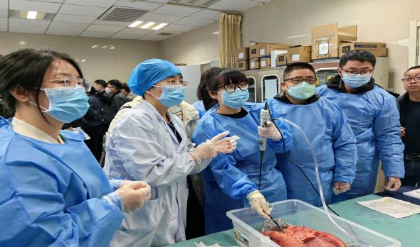 上午的课程一直持续到 12:30,但学员们仍保持高涨的学习热情,为了让学员们有更多的实际操作机会,短暂休整后下午 13:00 便开始了手把手支气管镜操作培训。