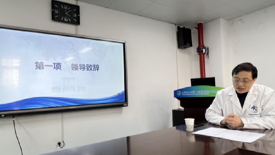 医务部副部长、控感办主任叶峰代表科室对各位专家的到会表示欢迎和感谢,首先回顾了《医院感染预防控制与管理学》课程的启动背景和意义,介绍了课程的总体部署和规划,表示控感办将全力谋划我院感控学科的发展,缩小我院与一流高校和医院的发展差距,努力使其成为医学生进入临床工作的必修课。叶峰副部长在致辞中强调,感控系列课程建设是一项长期系统工程,要借助各学科的大力支持和帮助,同时以此课程设立为契机,加强感控与各专科联动,充分发挥感控教学作用,使得院内感染防控从“当下改”变为“长久立”,画出多学科共赢的最大同心圆。